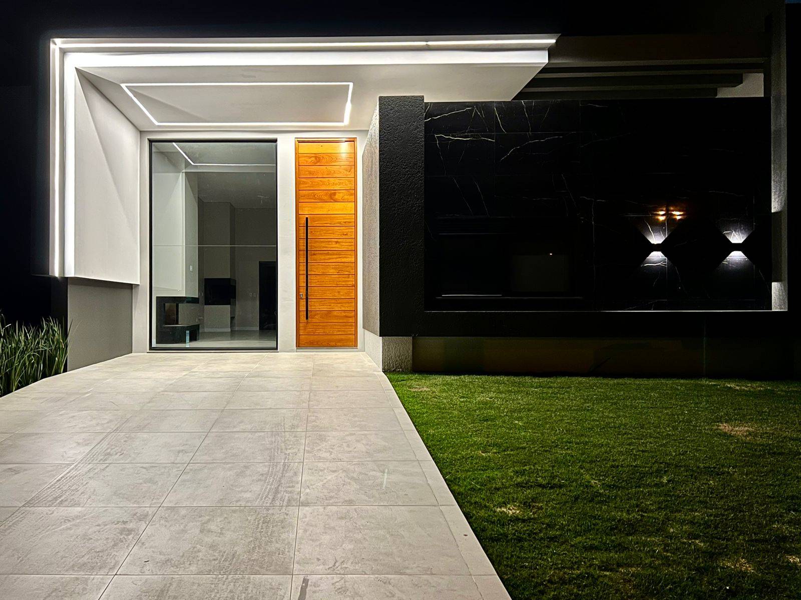 Capão da Canoa - RS Linda casa térrea com projeto contemporâneo, 04 amplas suítes, pé direito alto, amplo living integrado, lareira, lavabo, lavanderia individual, pátio para piscina, aberturas pretas automatizadas, frente leste, abrigo para 02 carros.