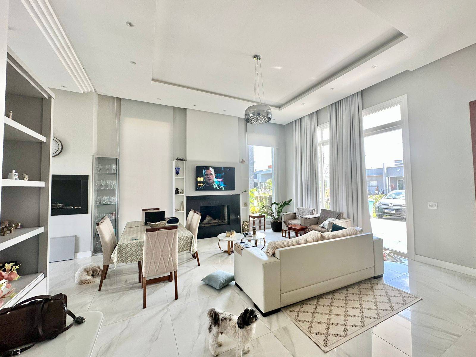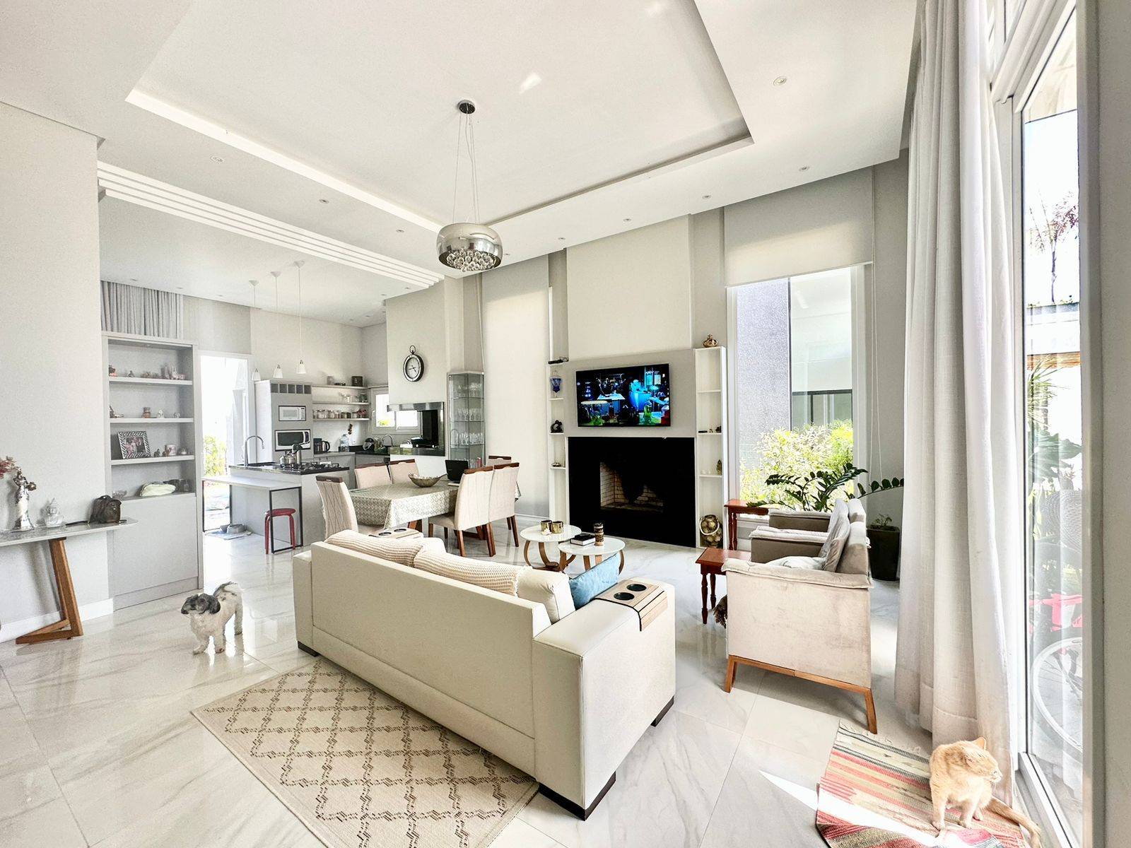 Excelente casa alto padrão em condomínio fechado, posição solar oeste, com 186m² total, mobilhado e decorado, 4 suítes, lavabo, split em todas as peças, amplo living estar e jantar, área de serviço separada, lareira, pátio. Agende sua visista com Lisane Rodrigues. Telefone: (51) 98052-2723