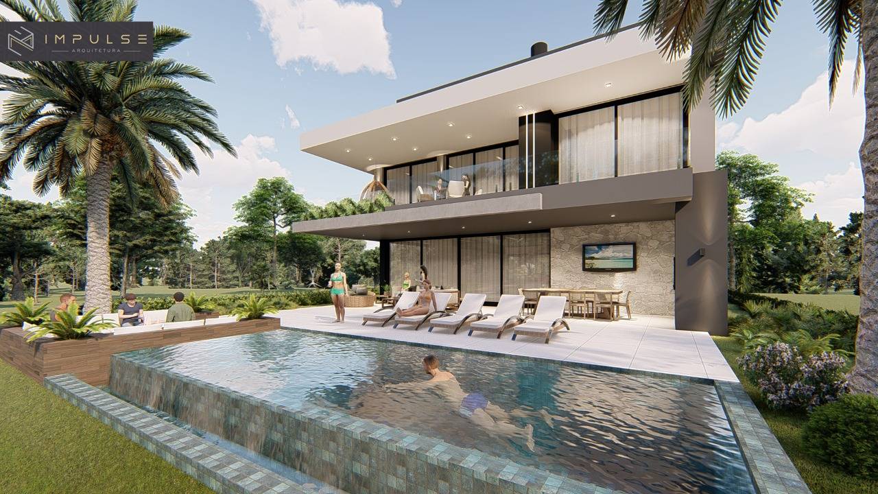 Casa em condomínio fechado, composta por 5 suítes, sendo 1 master, dependência de empregados, estar íntimo, living integrado em 3 ambientes, lareira, espaço gourmet com churrasqueira, depósito, mezanino e vaga coberta para 2 carros.