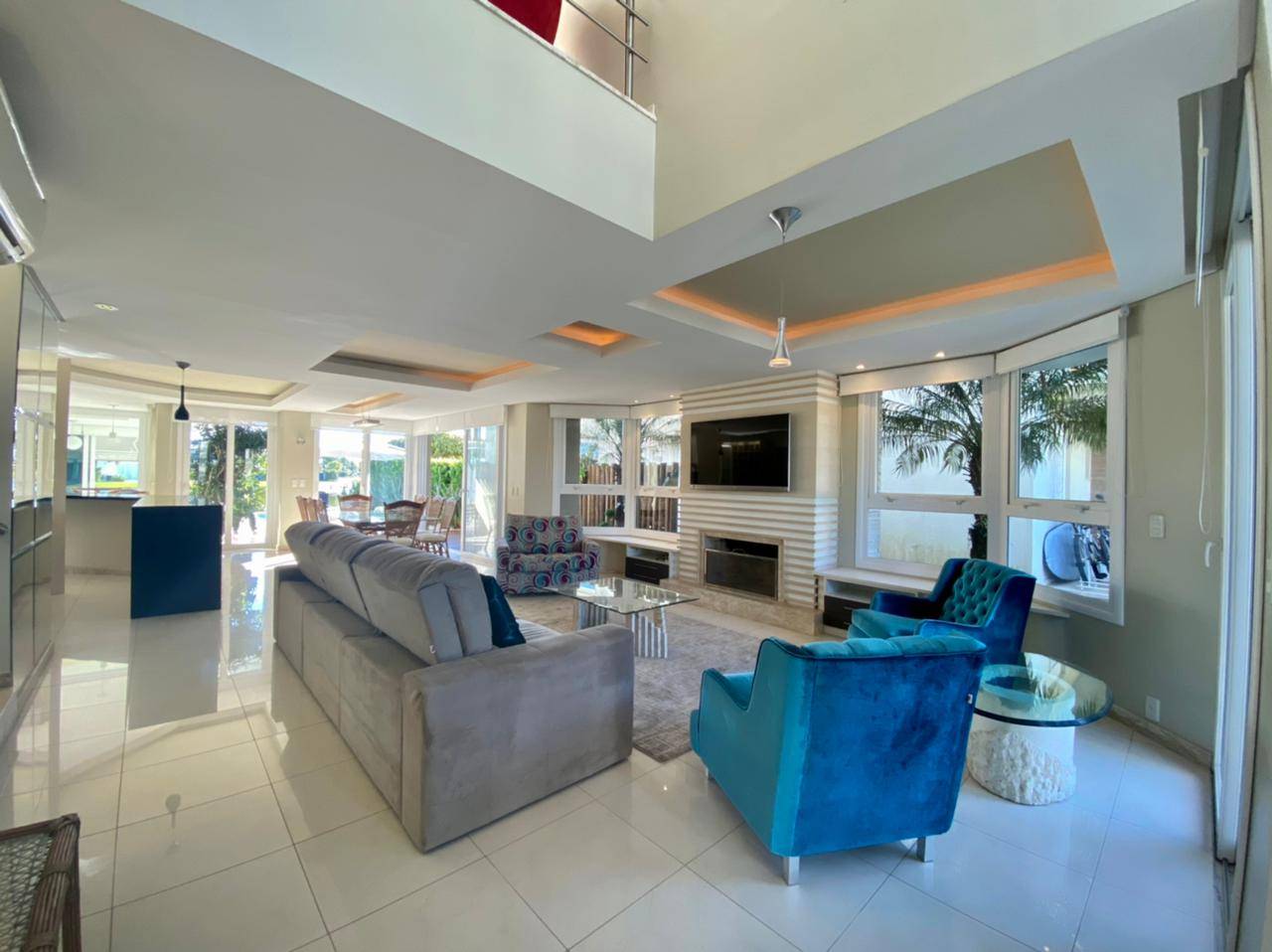 Sobrado com linda vista para o lago e por do sol, na melhor orientação solar do lago, totalmente mobiliado, composto por 04 suítes (sendo 1 térrea e 1 com sacada frente lago), living em 3 ambientes com lareira e churrasqueira integrados a cozinha, lavabo, espaço gourmet com churrasqueira e banheiro (auxiliar a piscina), área de serviço, piscina aquecida, jardim com paisagismo e abrigo para 02 carros.